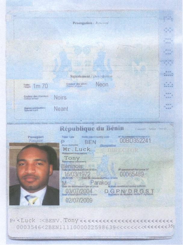 Dear Thomas Payne, I have gone through your email,fully understood and well okay. My dear brother Thomas Payne, It have been tough since a week now,that I have keep on telling you about this same thing concerning this transation,but you dont want to listen or even pay attentions to my words. I am really sad and annoyed over your’s reaction,That I suffered for you,some one I don't even know before,Am really bitter towards your miss understanding me in this transaction. You are the one that is delaying in this matter,if you can follow my instructions and obey what am telling,by been sincere with me, I promise that every thing will go the way I promised you, right from the very begging of this transaction. For,this reason that you did not trust me. I decide to open up my self to you,by attaching here a copy of my Internaional pass port, which is the only thing that will make you to undertand me and put your trust in me and know that all that am telling you is the real truths in this issue. It is very risk to delay and also If we keep on delaying more in this transaction, the Fedex company will term your parcel Cheque to unclaimed parcel and they will have it confiscated. Regards Mr Luck. |